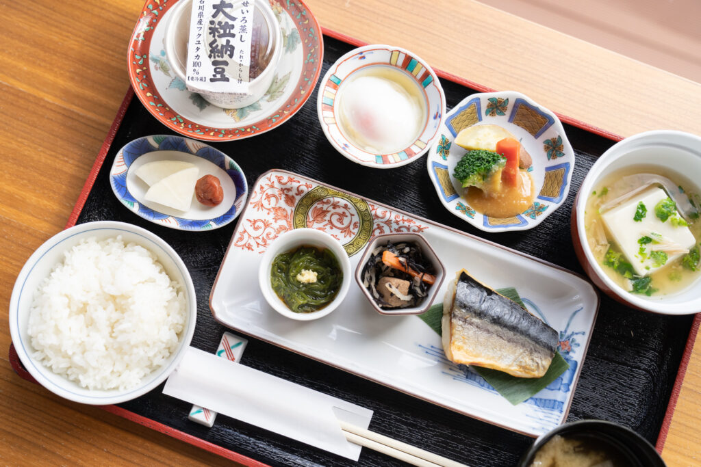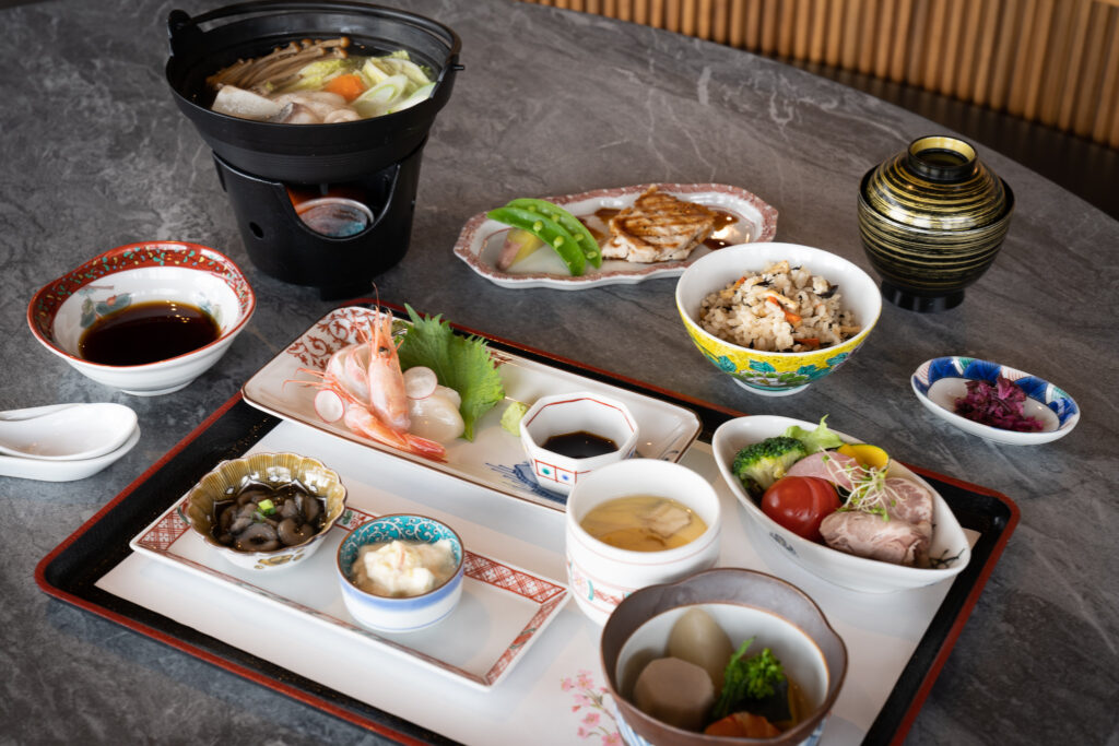 地元の食材をふんだんに使い、一皿一皿に繊細な技と工夫が施された料理。九谷焼の器と料理が響き合い、食べるたびに特別な余韻が広がっていきます。