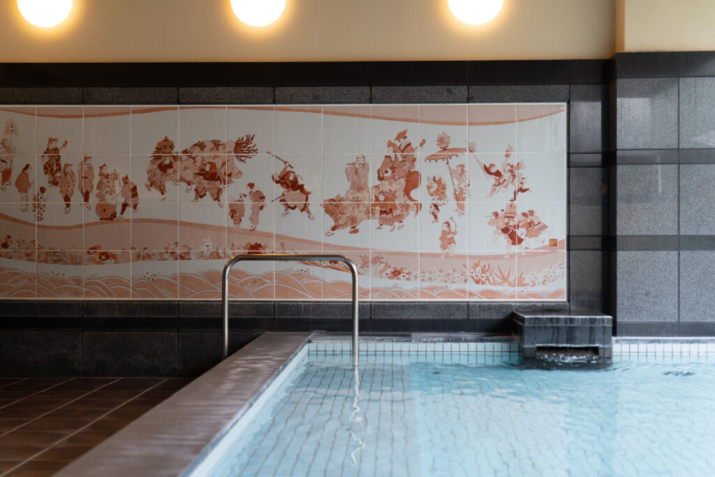 大浴場には、九谷焼の巨匠・福島武山(ふくしまぶざん)氏と武腰潤(たけごしじゅん)氏が手がけた大陶板が飾られています。