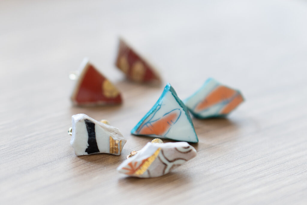 選んだ瞬間は「ちょっと地味かな?」と思った陶片も、マニキュアを塗ると一変。自分だけの色彩をまとった九谷焼の陶片で作ったイヤリングは、手元に残る特別な思い出になりました。