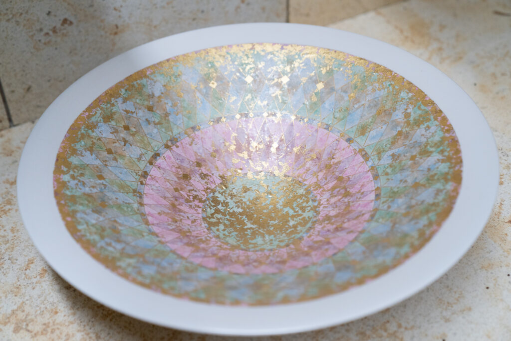 実際に体験してみると、金箔は驚くほど薄く、ほんの少しの力でもふわりと揺らいでしまうほど繊細。その扱いに慎重になりながら、指先に意識を集中させ、一枚一枚丁寧に置いていくたび、器が少しずつ華やかに彩られていきます。