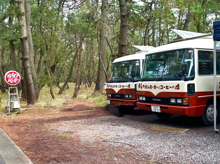 唐津市民のソウルフードでもあるからつバーガー、ポップで可愛いワゴン車で販売しています。