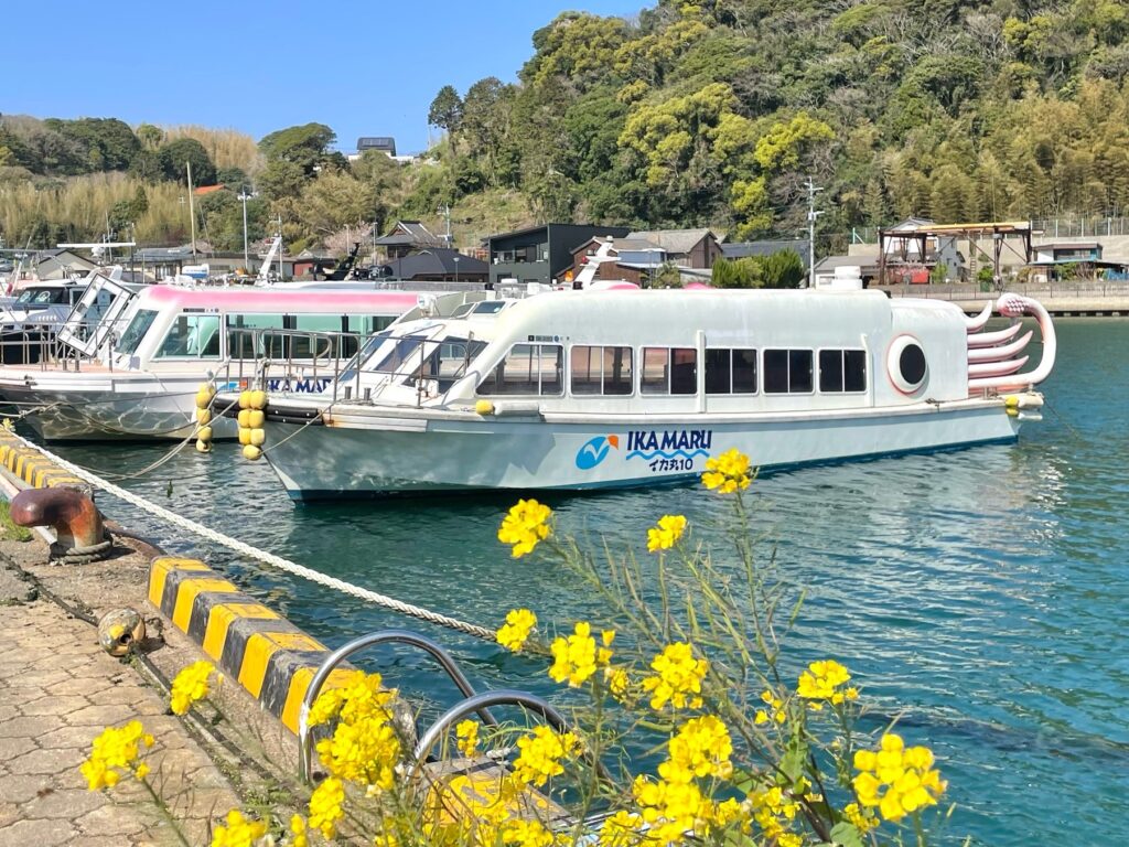 そんな呼子でイカの形をしたイカ丸という船に乗って、呼子の海や港、海蝕洞窟である七ツ釜を楽しめるアクティビティがあるんです。