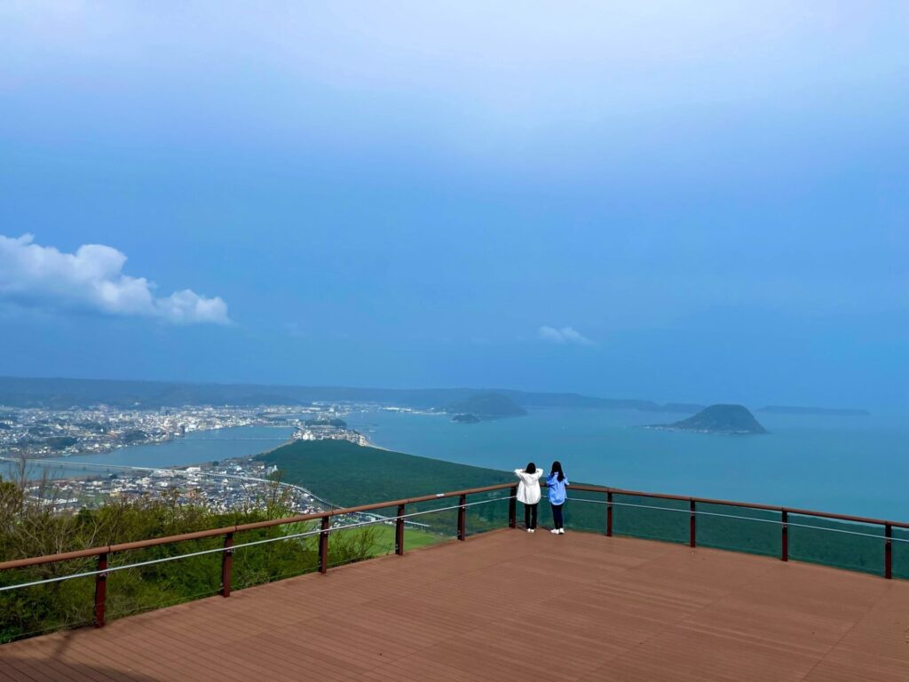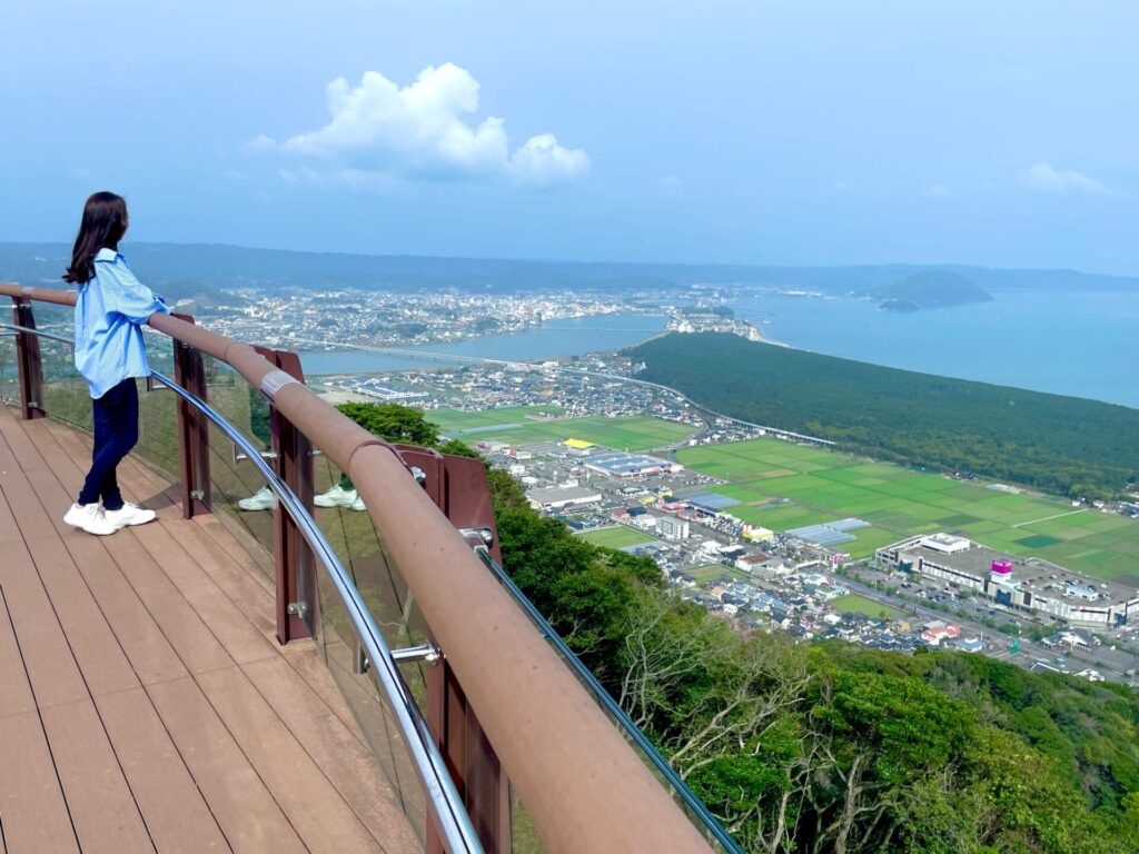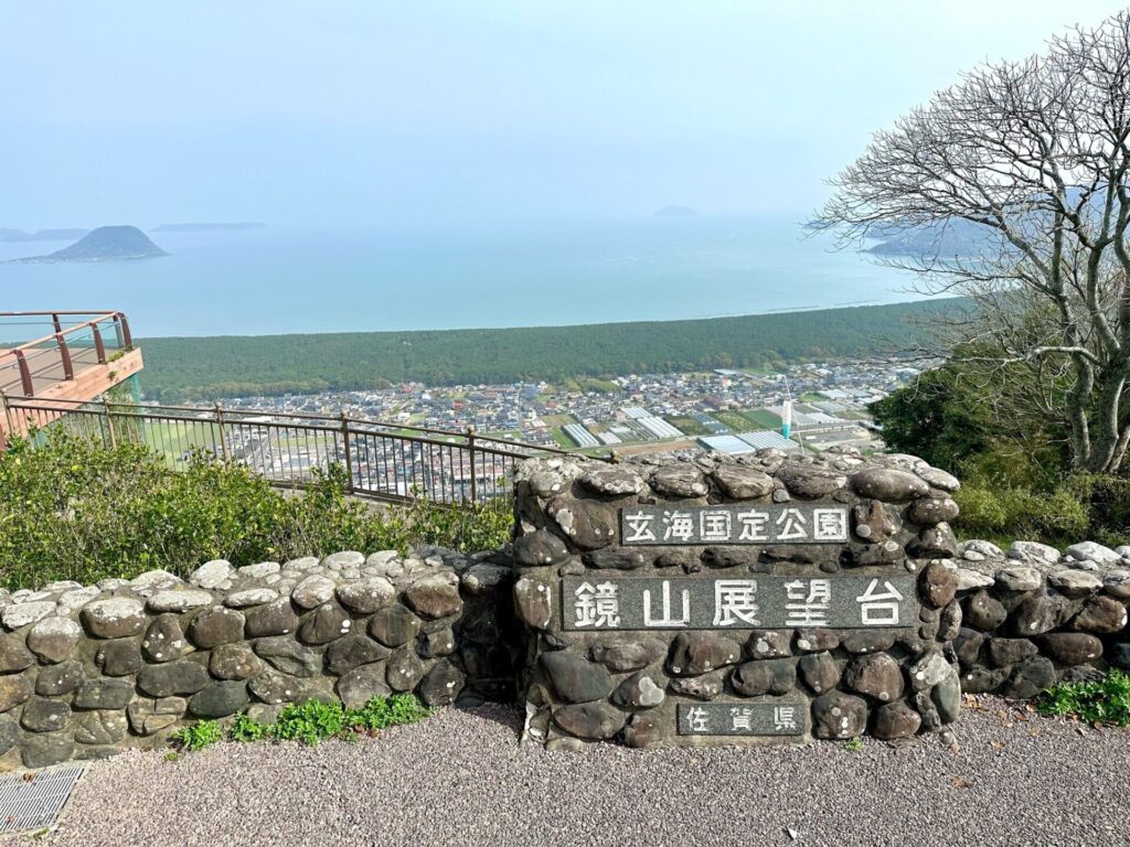 標高284mの山、くねくねと山道を車で登った先に広がるこの場所では、国の特別名勝・虹の松原や唐津湾を望む絶景が広がっていました。