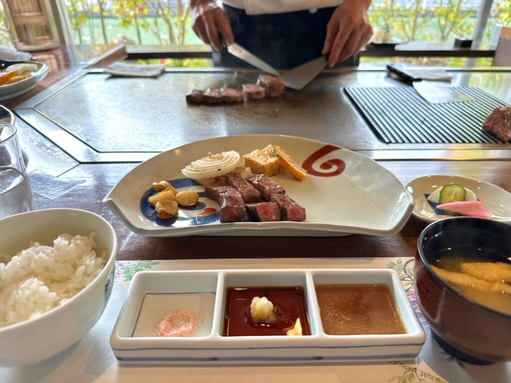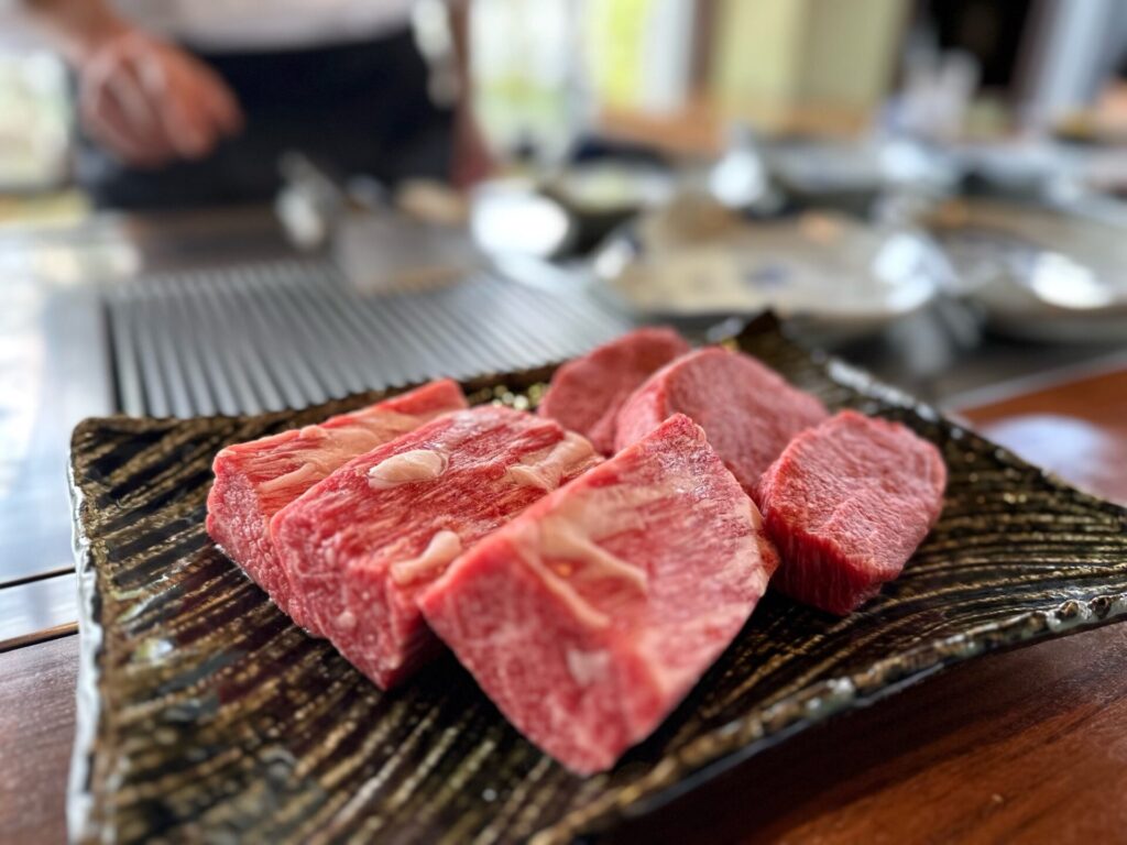 レディースランチでは、120gの本日のお肉のほか、サラダ・焼き野菜・ご飯・お味噌汁・香物・ソフトドリンク・デザートがセットで3,920円(取材時価格)という、ブランド牛のランチセットとは思えないほどリーズナブル。
