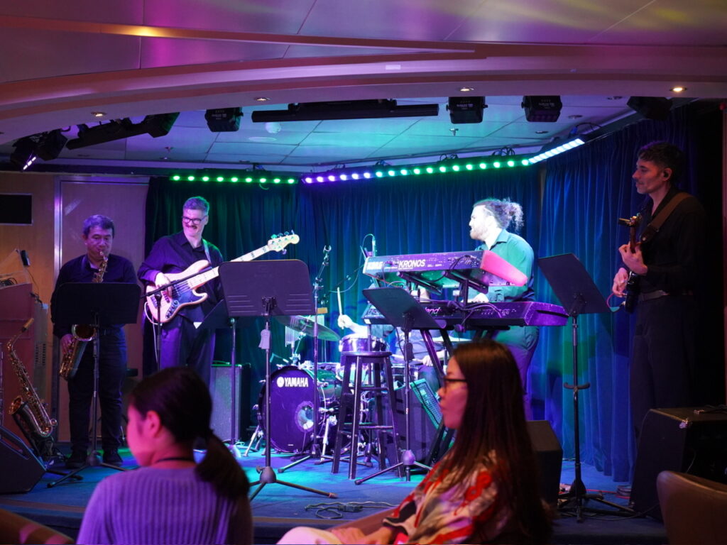 シンガー・ジョーとMITSUI OCEAN FUJIハウスハンドとダンサーズの生演奏による乗船パーティーは開催されました。