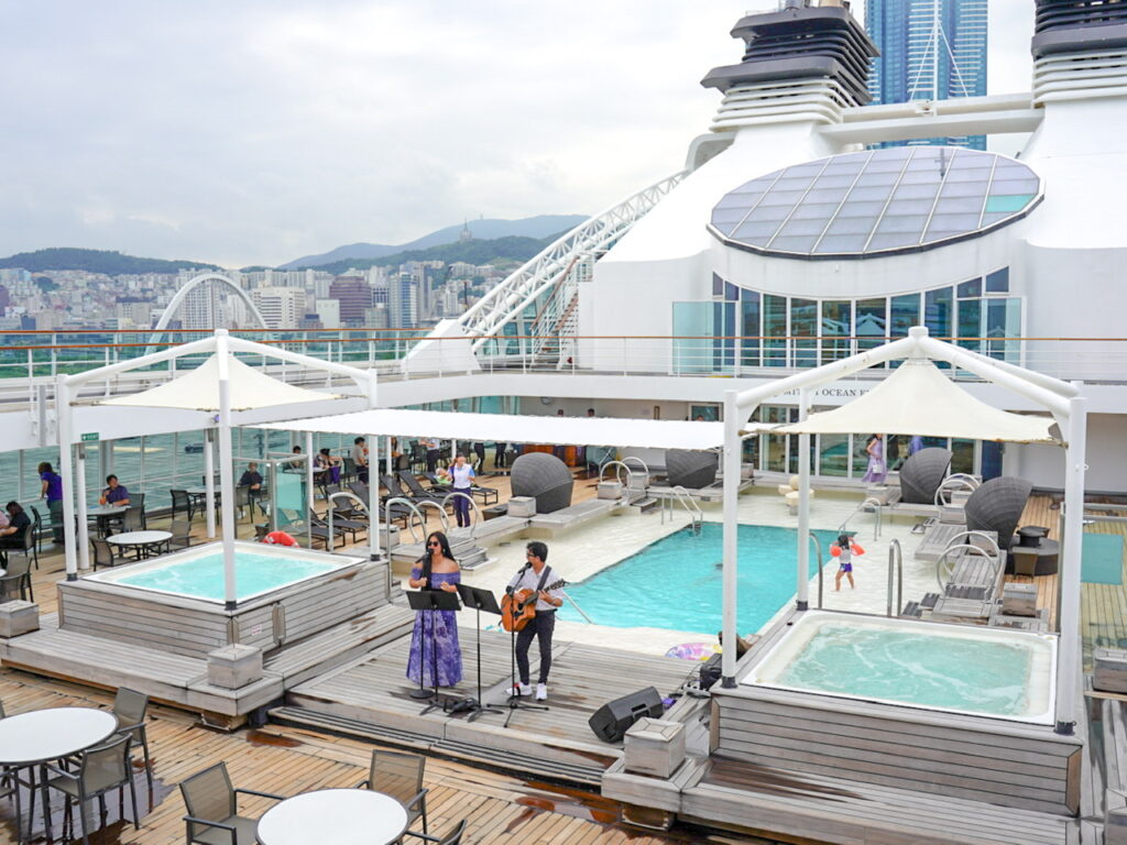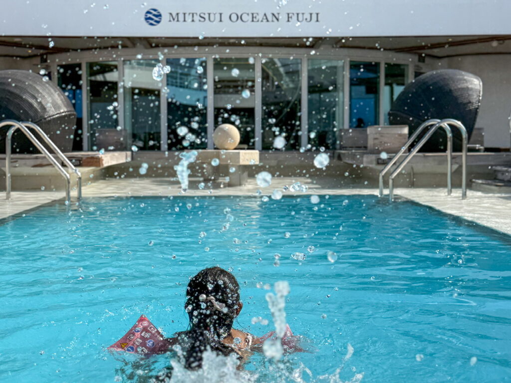 この日はお天気も良く娘が楽しみにしていたプールの時間。三井オーシャンフジにはメインの大きなプールがデッキ8中央のプール湖畔に1か所、ジャグジーは2か所設置されています。