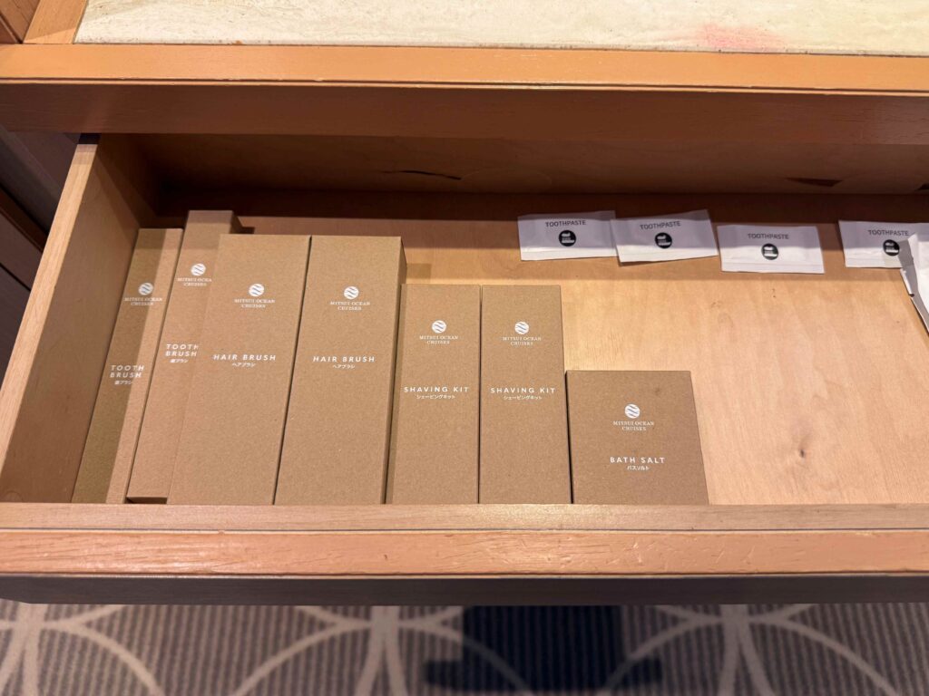 カジュアル船では、全て自分で準備して乗っていたので、こういった備品にもラグジュアリーさを感じます。
