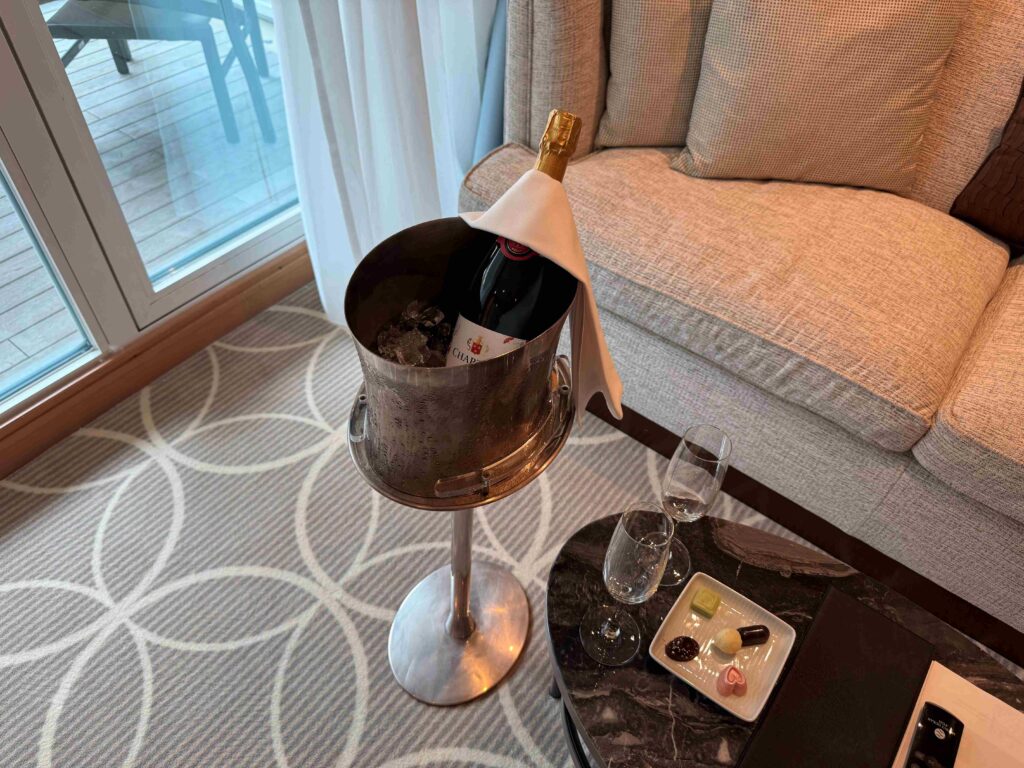 さらに、ウェルカムドリンクとして、スパークリングワインに、チョコレートのサービスも。