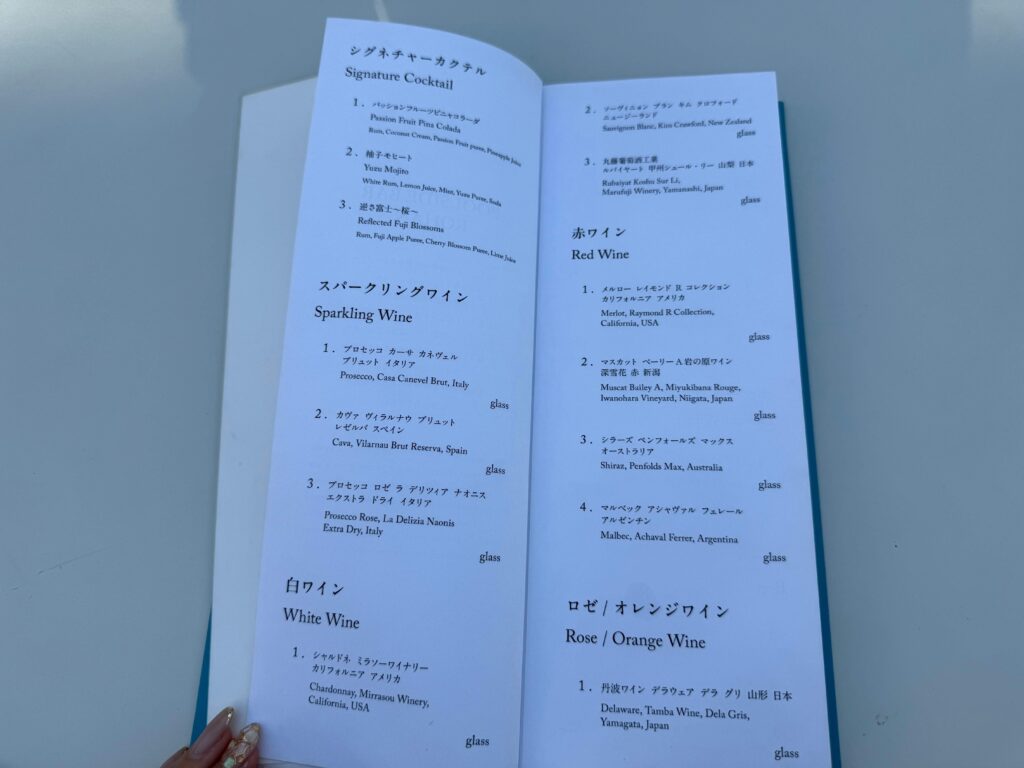 三井オーシャンフジは、アルコール (一部のアルコールを除く) もオールインクルージブなのでお財布の心配をせずに好きな時に好きなだけ飲むことができます。乗船後すぐに私たちもお酒を注文しました。