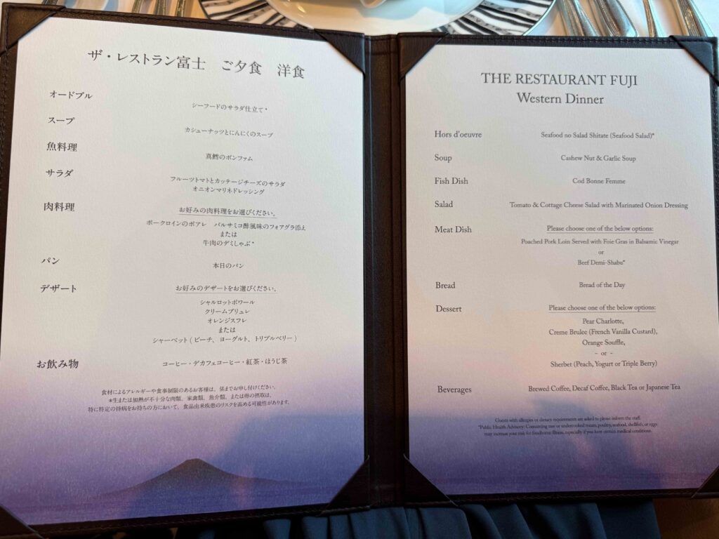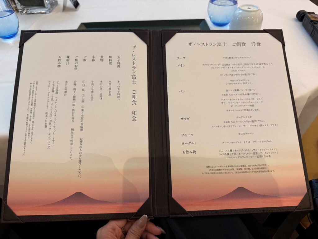 朝食は、ビュッフェレストランもありましたが、昨晩のディナーと同じ「ザ・レストラン富士」へ。