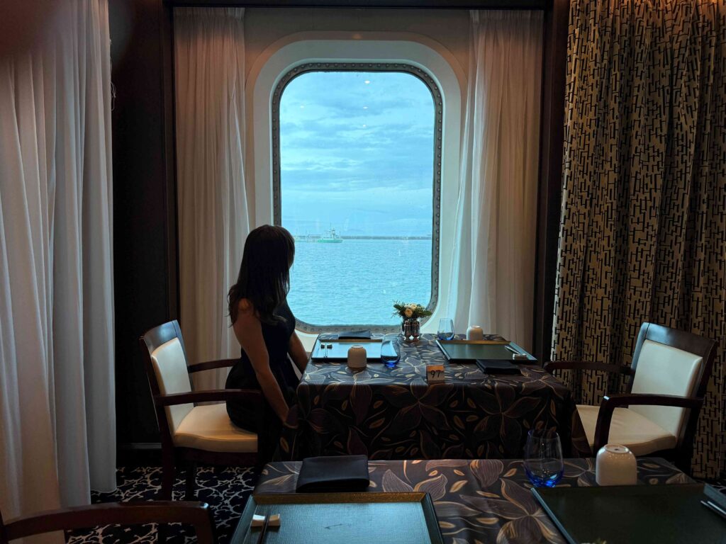 そして、船上とは思えないほどサービスが丁寧。グラスが空く前に自然に注がれるワイン、笑顔で会話を楽しませてくれるスタッフ。“非日常の中のぬくもり”が、五感を満たしてくれる素晴らしい時間になりました。