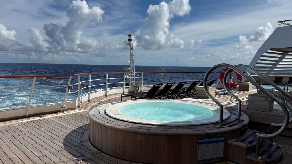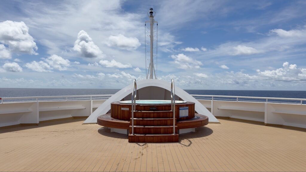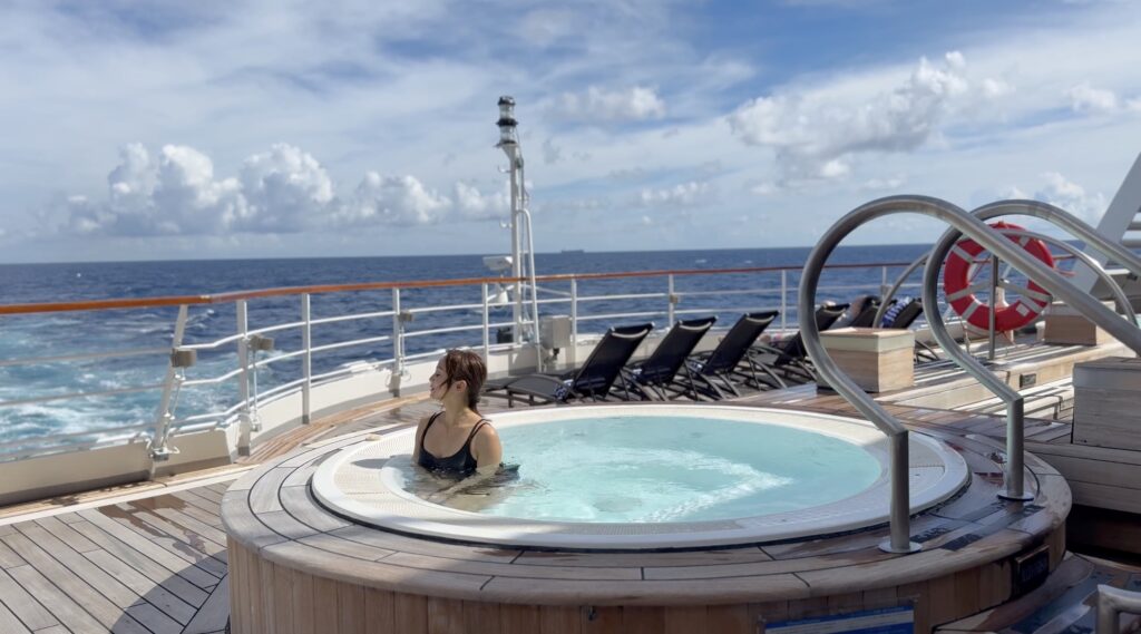 朝食後は、ジャグジーでのんびり。三井オーシャンフジには、デッキプールだけではなく、数箇所にジャグジーがあるので探してみてください。