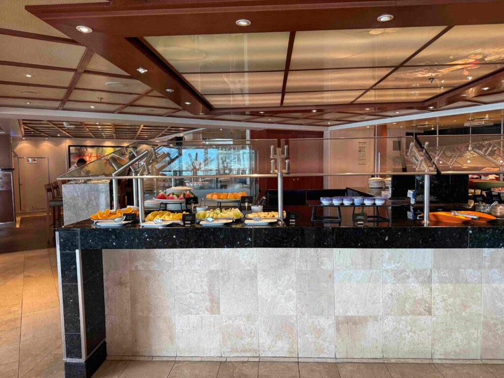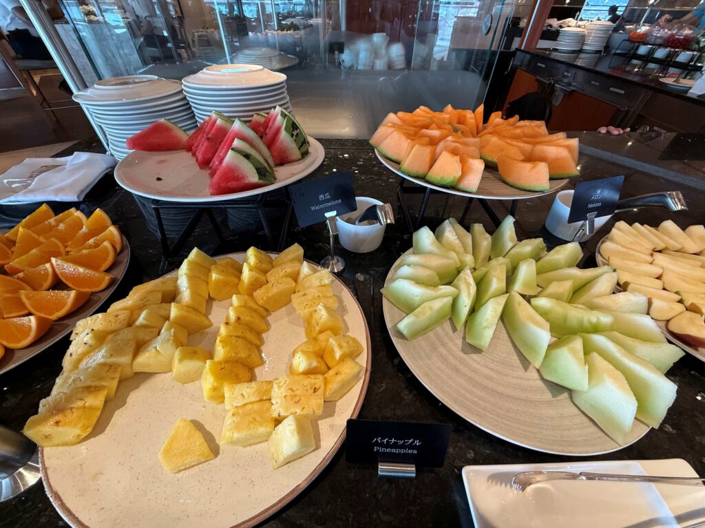 種類豊富なサラダにフルーツ、和食に洋食、アジア料理と多国籍で、ブッフェレストランもレベルが高く、改めて三井オーシャンフジの食事のクオリティの高さを実感しました。