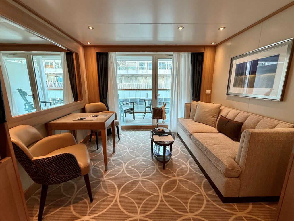 緊急時の説明を受けた後は、お部屋に向かいます。今回泊まったのは「ベランダスイート」のお部屋。