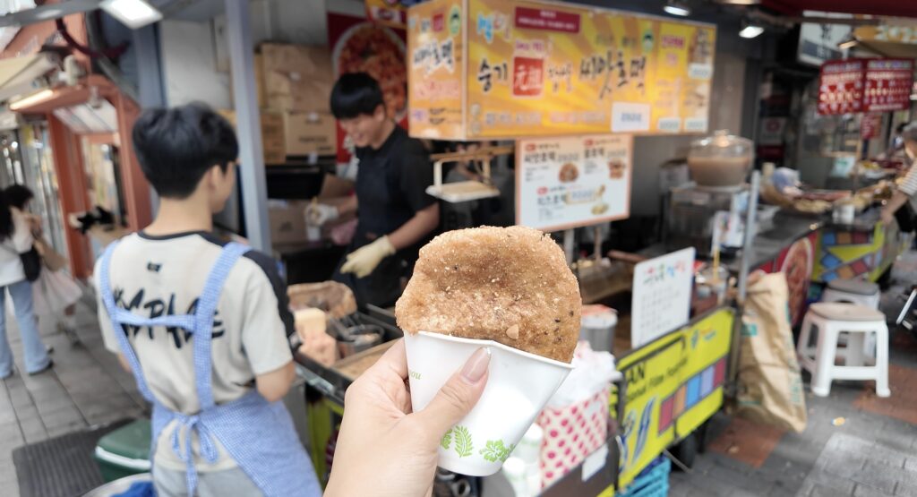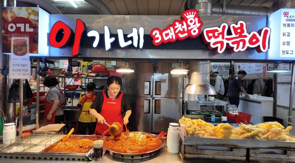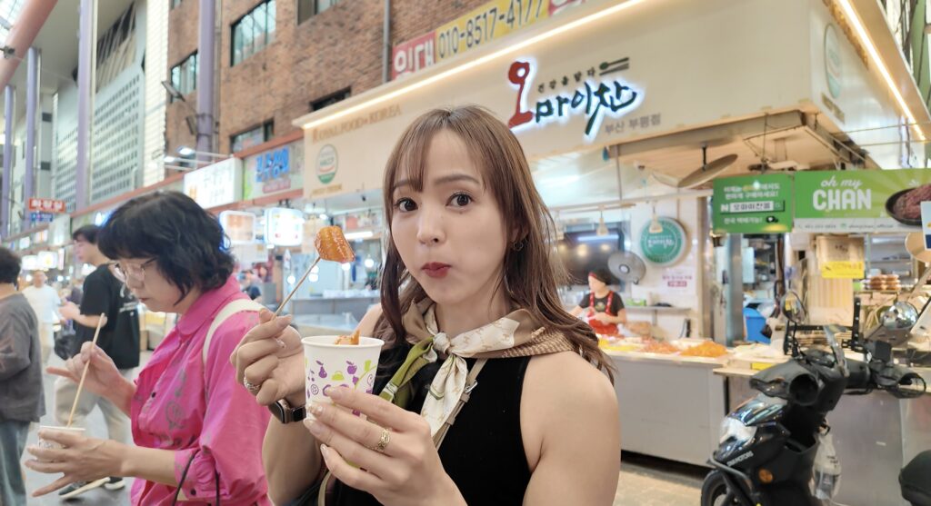 釜山では地元の市場の屋台でホ名物シアーホットクを食べたり、人気のトッポギのお店に行き、現地グルメを楽しみました。
