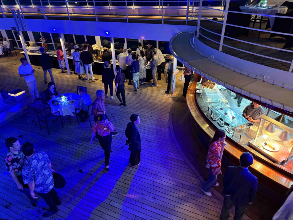 音楽に合わせてみなさんが踊り出し、まさに“クルーズの夜”らしい華やかな時間になっていました。