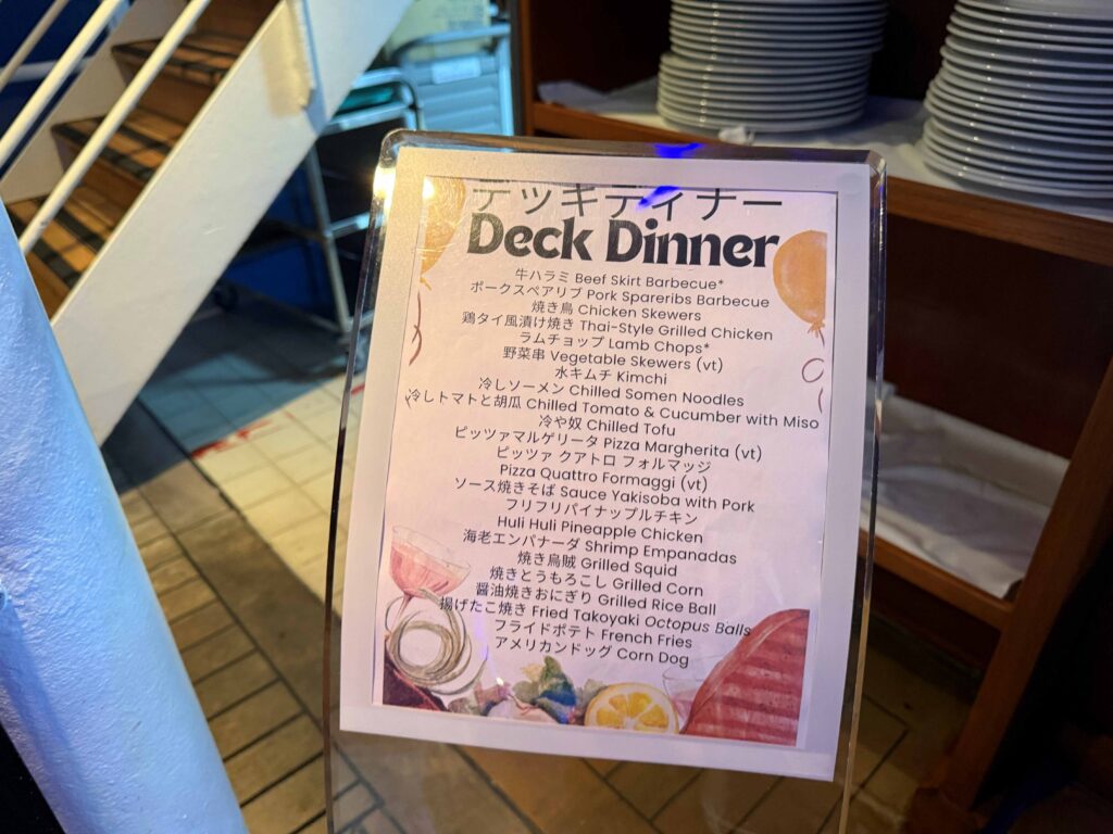 そして再び夜には船へ戻り、3日目の夜はデッキディナー。