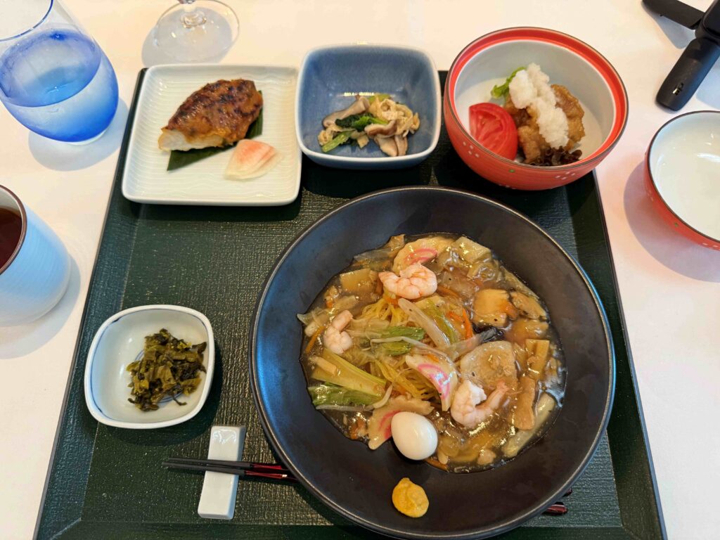 昼食は「ザ・レストラン富士」で、熱々の餡掛け焼きそばをオーダー。香ばしい麺にとろりとした餡が絡んでいてとても美味しくいただきました。
