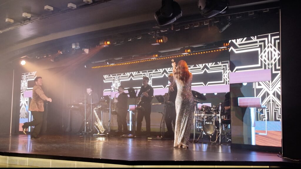食後は、MITSUI OCEAN FUJIのシンガーズ&ダンサーズ&ハウスバンドによる最後のショータイムを楽しみます。