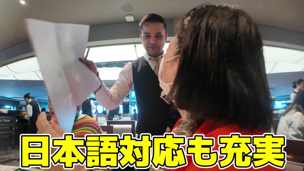 また、レストランでは簡単な日本語での注文も可能です。スタッフはフレンドリーで、言葉に不安を感じることなく、食事を楽しむことができます。さらに、日本語のメニューも用意されているため、料理選びもスムーズ。日本人の旅行者にとって、非常にありがたい配慮が随所に感じられます。