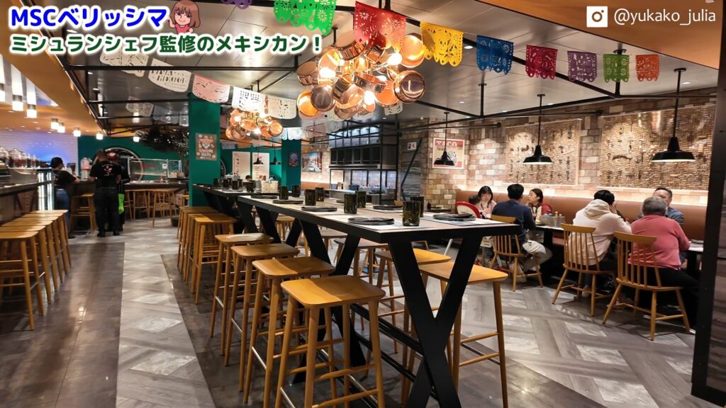 船旅ならではの特別な料理を楽しむなら、ぜひ立ち寄りたいレストランです。メキシカンの本格的な味が堪能できるこの場所は、食通にも大満足の一品です。