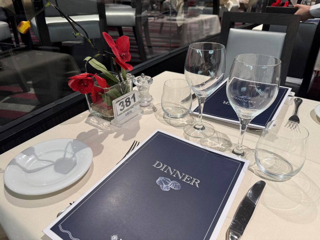 MSCベリッシマのコースディナーは食事開始時間が決まっていて、1回目か2回目のどちらか同じ時間に一斉スタートとなります。でもアウレア特典なら、ライトハウスレストランという専用エリアで17:00〜20:30の間、自由に夕食時間を選べます。