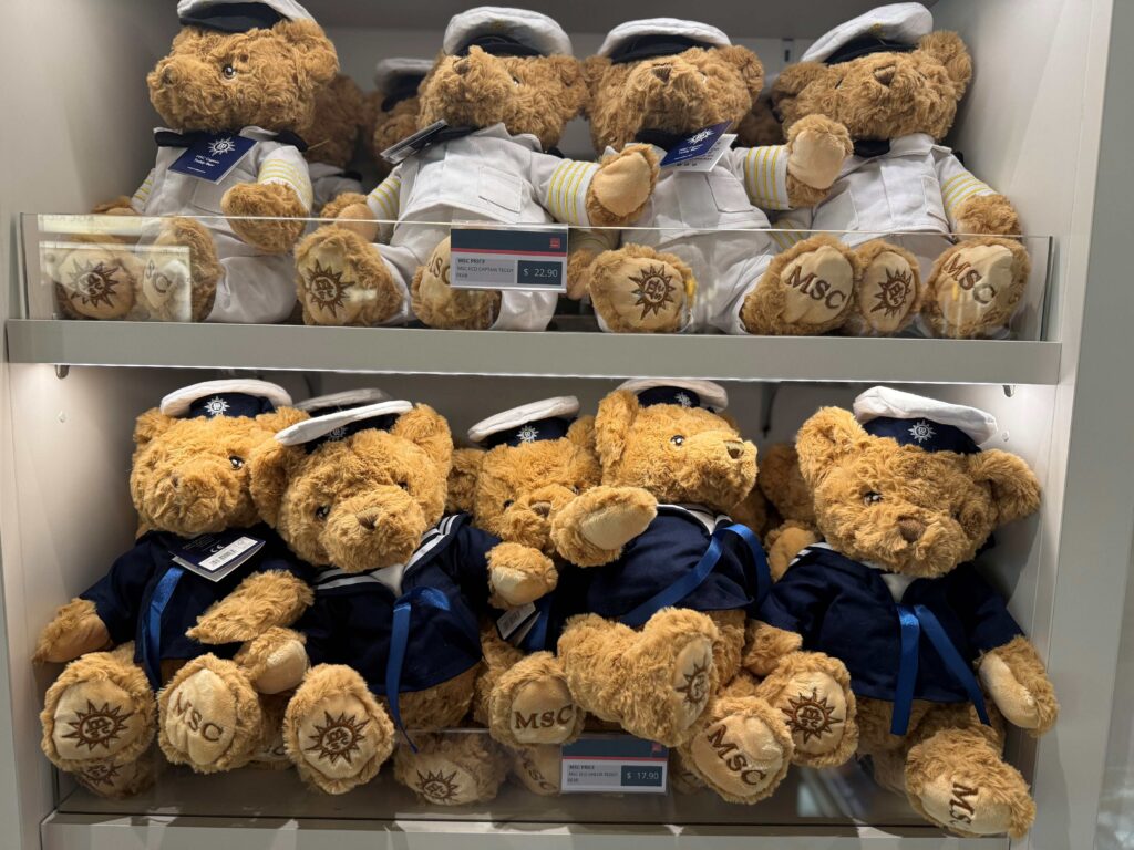 おもちゃはお気に入りのものを少し持って行き、追加で船内のショップでバービーのおもちゃと、くまさんのお人形などを購入、娘も大喜びでした。