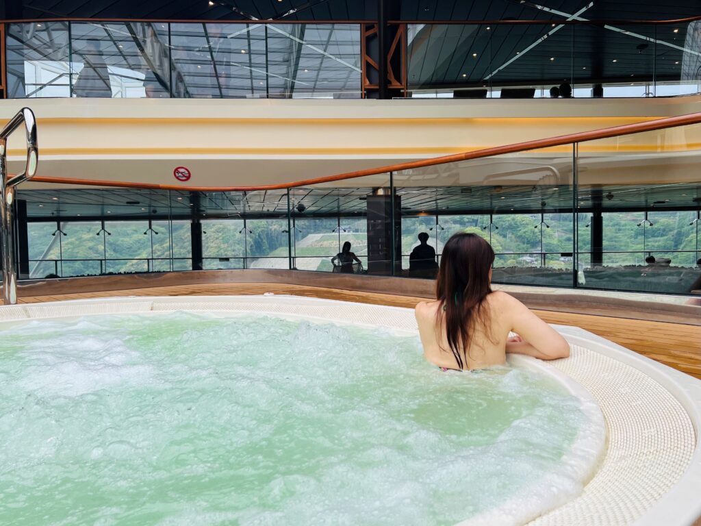 寄港地で歩き疲れたら船内のジャグジーで一休み。お部屋はシャワーのみなので、温水で一息つけるのも有難かったです。