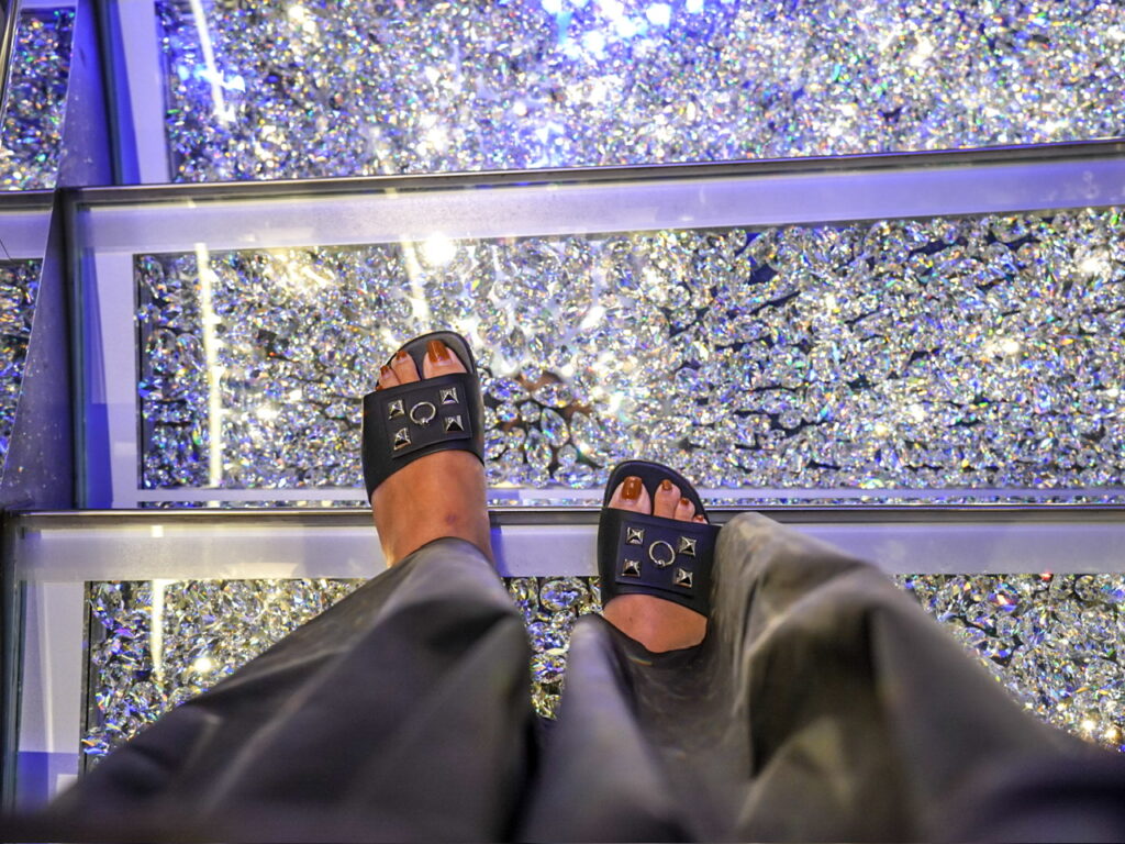 この階段にスワロフスキー・クリスタルでできており、1段ごとに使用されているスワロフスキークリスタルの数は600個。全階段で使用されている総数はなんと6万個!!