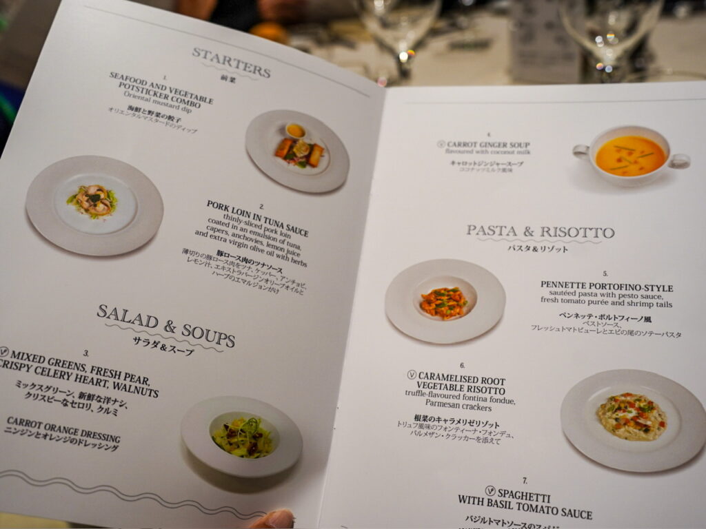 若い方や男性にはやや少なく感じるかもしれません。メインダイニングは好きなものを好きなだけいただけるシステムなので、物足りなさを感じる場合はメインを2品オーダーするなど調整も可能です。