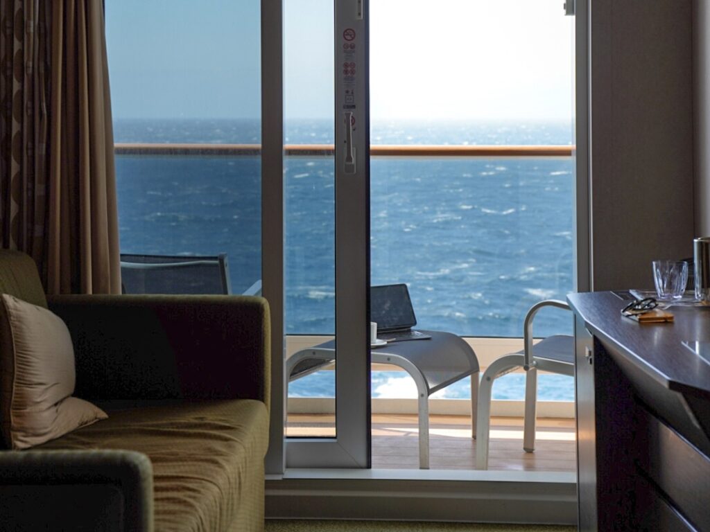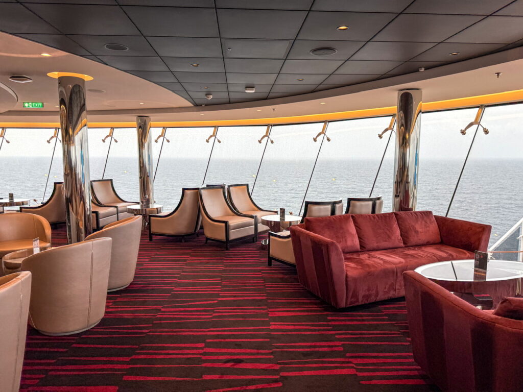 クルーズ船内はどこも混雑していますが、スカイラウンジは比較的人も少なく落ち着く空間なのでワーケーションするのにもおすすめの穴場スポットです。