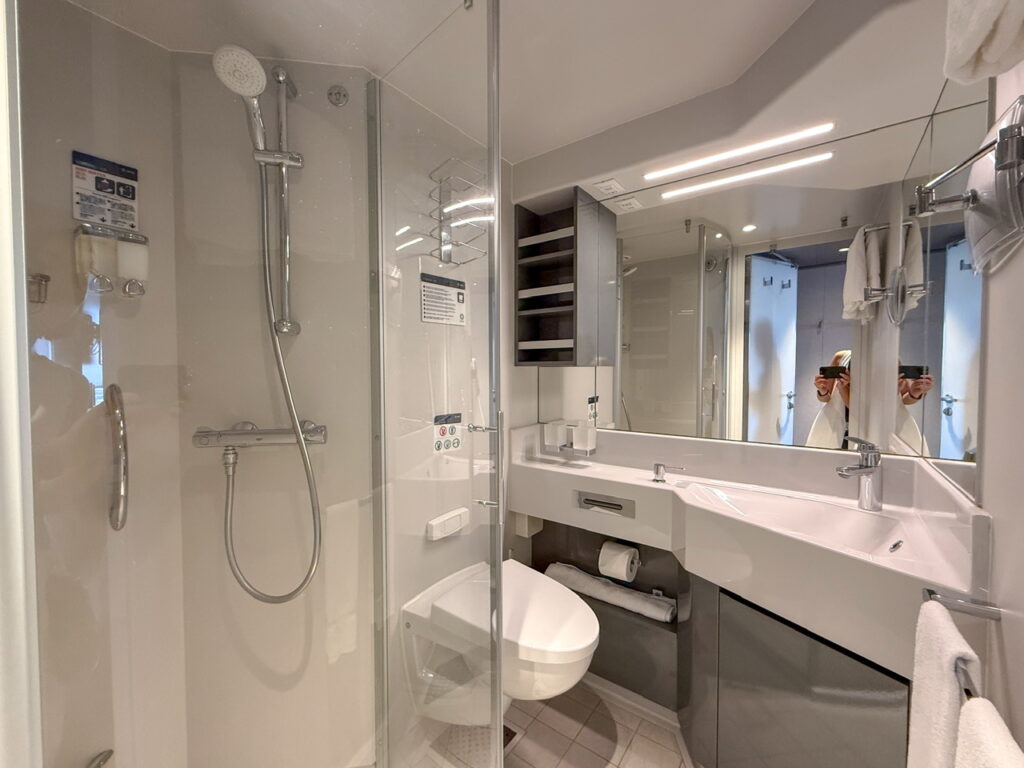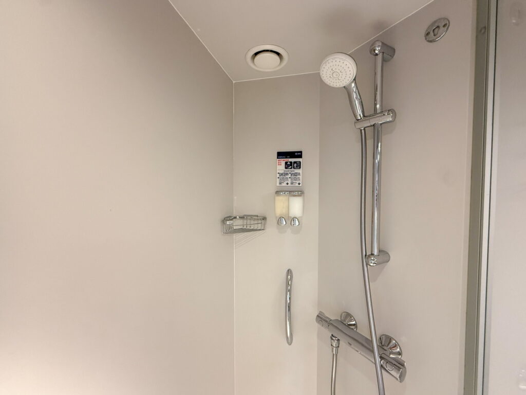 シャワーの水圧も申し分なく、熱々のホットシャワーも出るので、バスタブはついていませんが体をゆっくり休めることができました。そしてどのカジュアル船も共通ですが、シャンプーはリンスインシャンプーとボディソープなので、必ずシャンプー&トリートメントは持参しましょう。