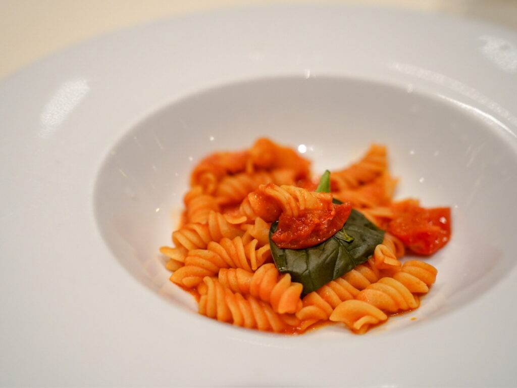 1ポーションの量は少なめなので、前菜、パスタ、メイン料理、デザートをいただいても程よい満腹感でちょうどいい量。