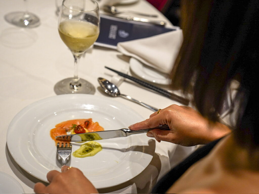 クルーズ船内の食事はメインダイニングのコース料理やビュッフェレストランの食事は基本クルーズ代金に含めれているので好きなものを好きな場所で好きなだけいただくスタイル。