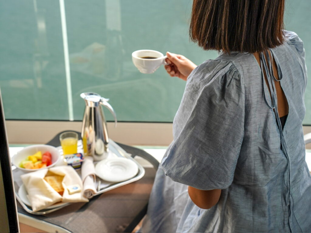 これぞクルーズ旅の醍醐味!バルコニーで朝食を