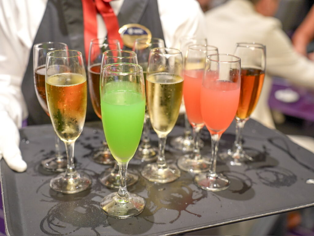 エレガントナイトの日は「MSC乗船歓迎カクテルパーティー」が行われ、無料でお酒やソフトドリンクが振る舞われました。