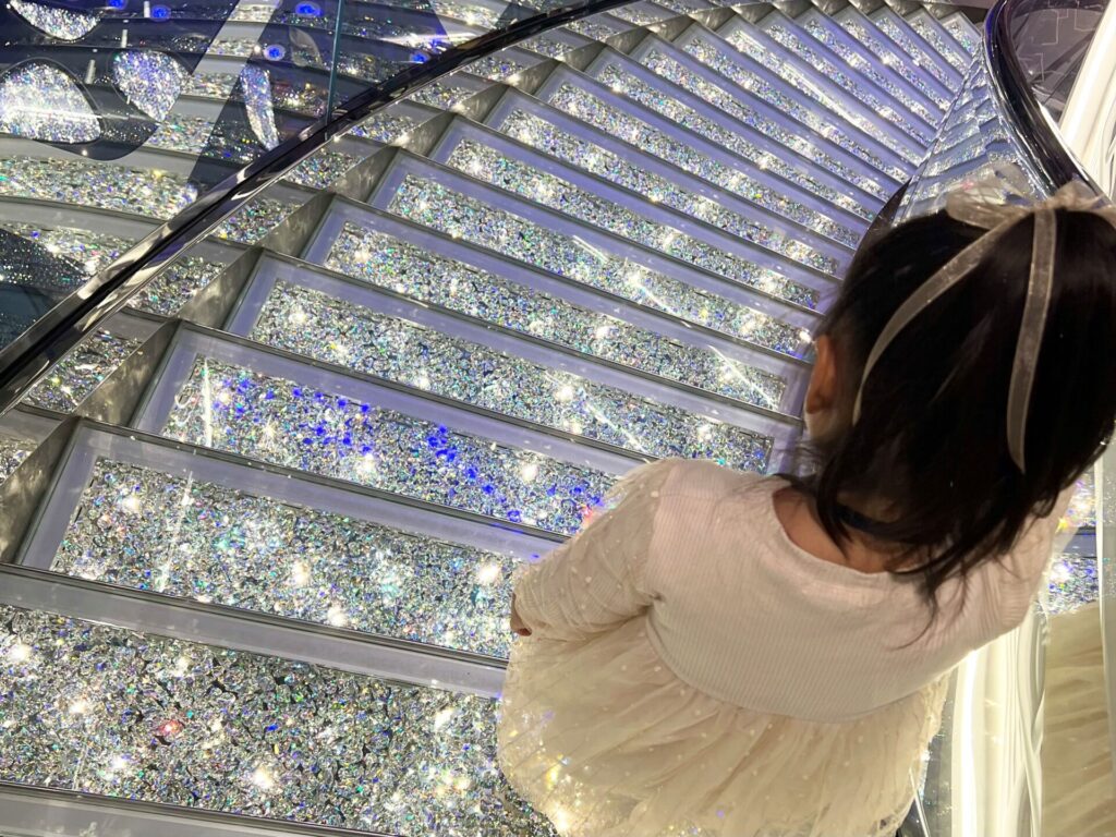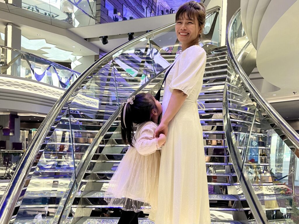 MSCの有名なスワロフスキーの階段は、皆で写真を撮り合ったり、エレガントになりきるのも楽しいフォトスポットです。