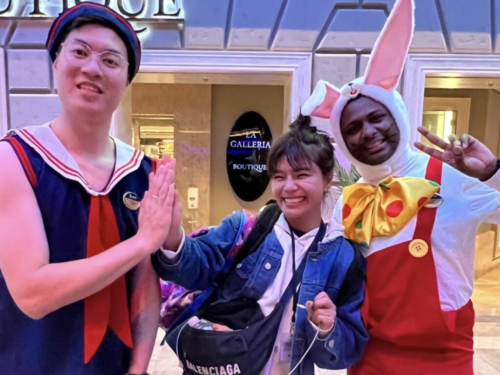セルフィーで写真を撮ろうとしたら、クルーの方が写真撮ってあげるよって。海外の方のフレンドリーで明るい感じ…皆が楽しんでる!そんな感じの雰囲気です。