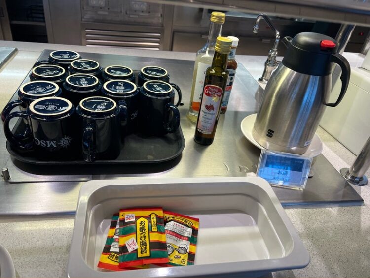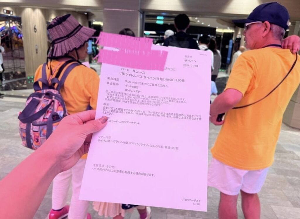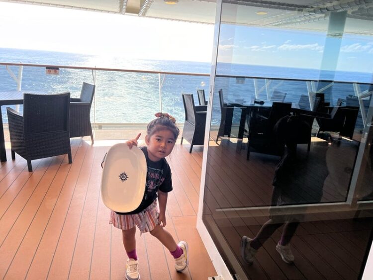 下船日は皆チェックアウトのため客室を早めに出されてしまうので、座れる席を確保する必要があります。