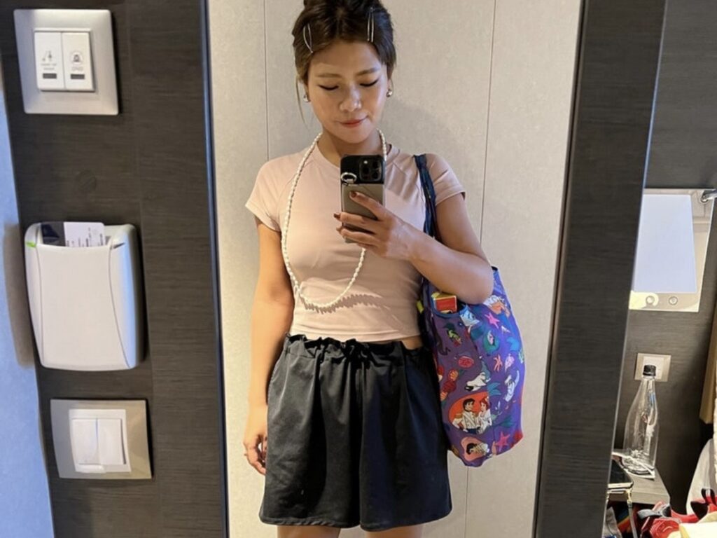 乗下船の日は長袖パーカーにタイツを履いて少し温かい格好で。