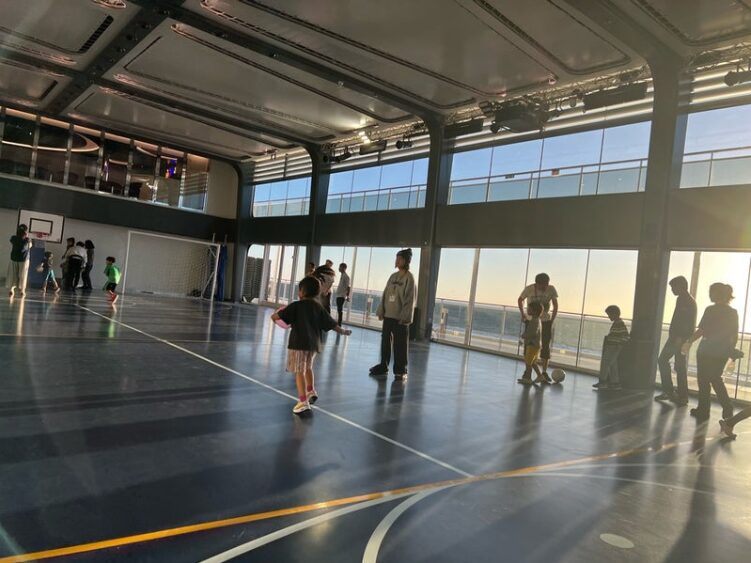 16階にあるスポーツ施設は90㎡の広さがあるので、ゴールが埋まっていてもパス練、バスケット、テニス、バレーボールなど色々な遊びができます。