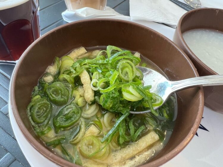 ここでの一番人気は明太子〜!一瞬でなくなってました。薬味があり、お味噌汁にはたっぷりネギを入れれます。