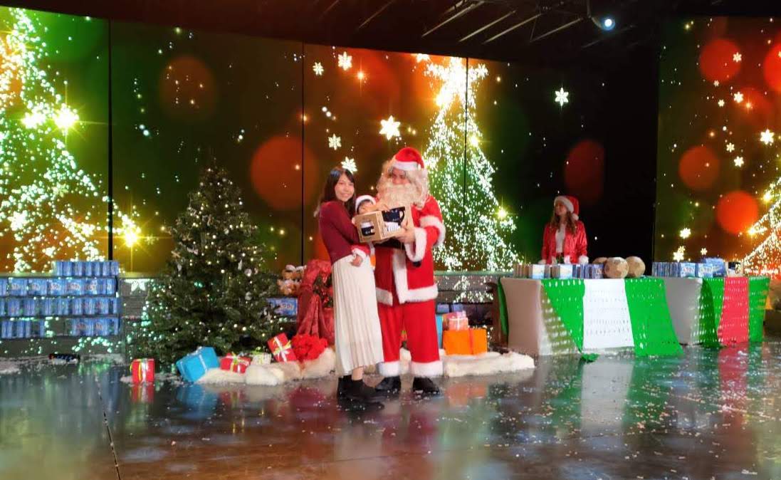 1組ずつステージでサンタさんと写真撮影あり、プレゼントの手渡しもあり。