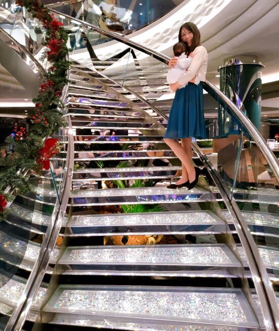 MSCベリッシマはカジュアルクルーズですが、このスワロフスキーの階段があると一気にラグジュアリーな雰囲気になりますね。