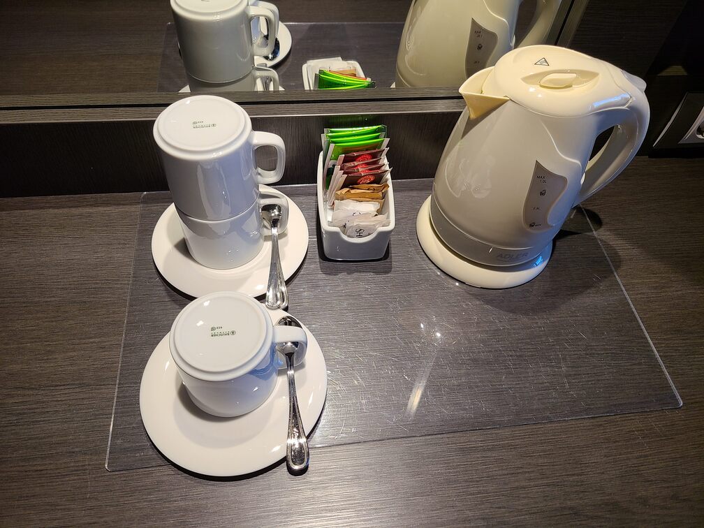 MSCベリッシマは日本発着の船なので珍しくお部屋に電気ケトルが用意されています。