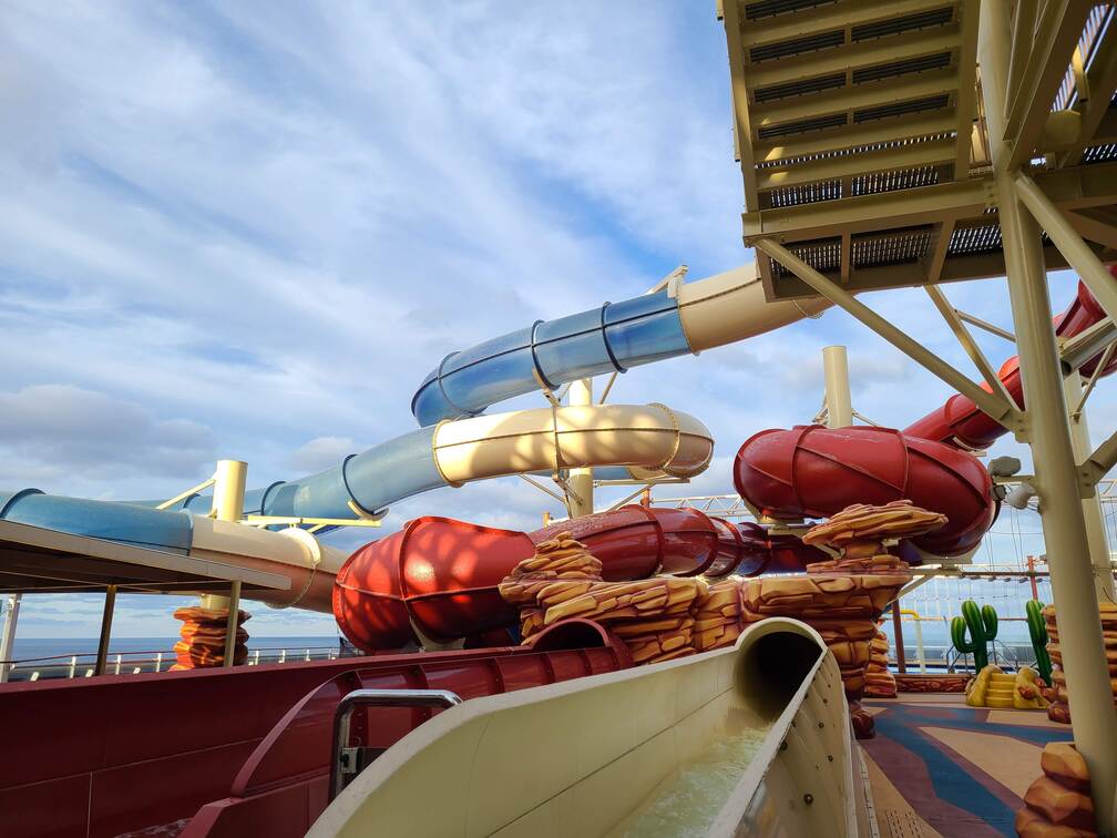 クルーズ内には室内・室外プールとジャグジーがあり、大きなウォータースライダーやアスレチックもあります。