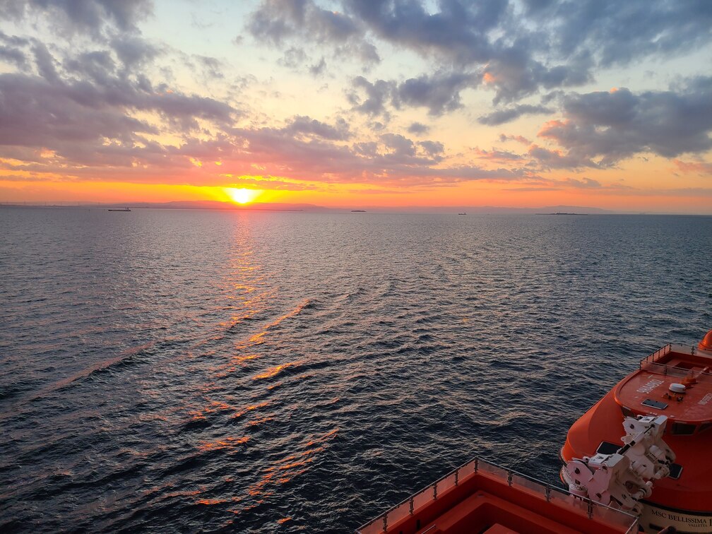 もちろんクルーズの屋上に行って見ることもできますが、娘が寝ている間にそっとバルコニーに出て日が登ってくる瞬間をのんびり眺められる時間が最高でした。