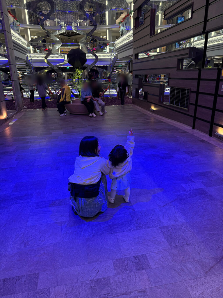 天井がLEDスクリーンになっているプロムナードも、天井を見上げて目をキラキラさせていました。