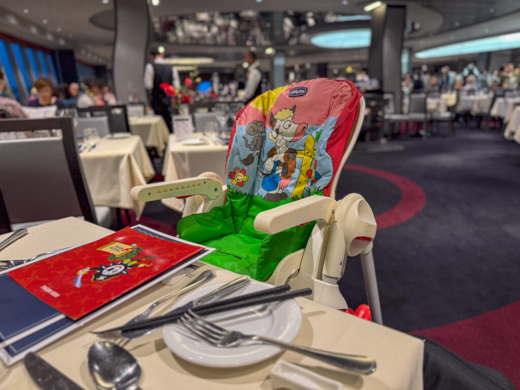ベリッシマは子連れで乗船する人も多く、子供を連れてビュッフェに行くとクルーがすぐ「キッズチェア使う?」と声をかけてくれます。