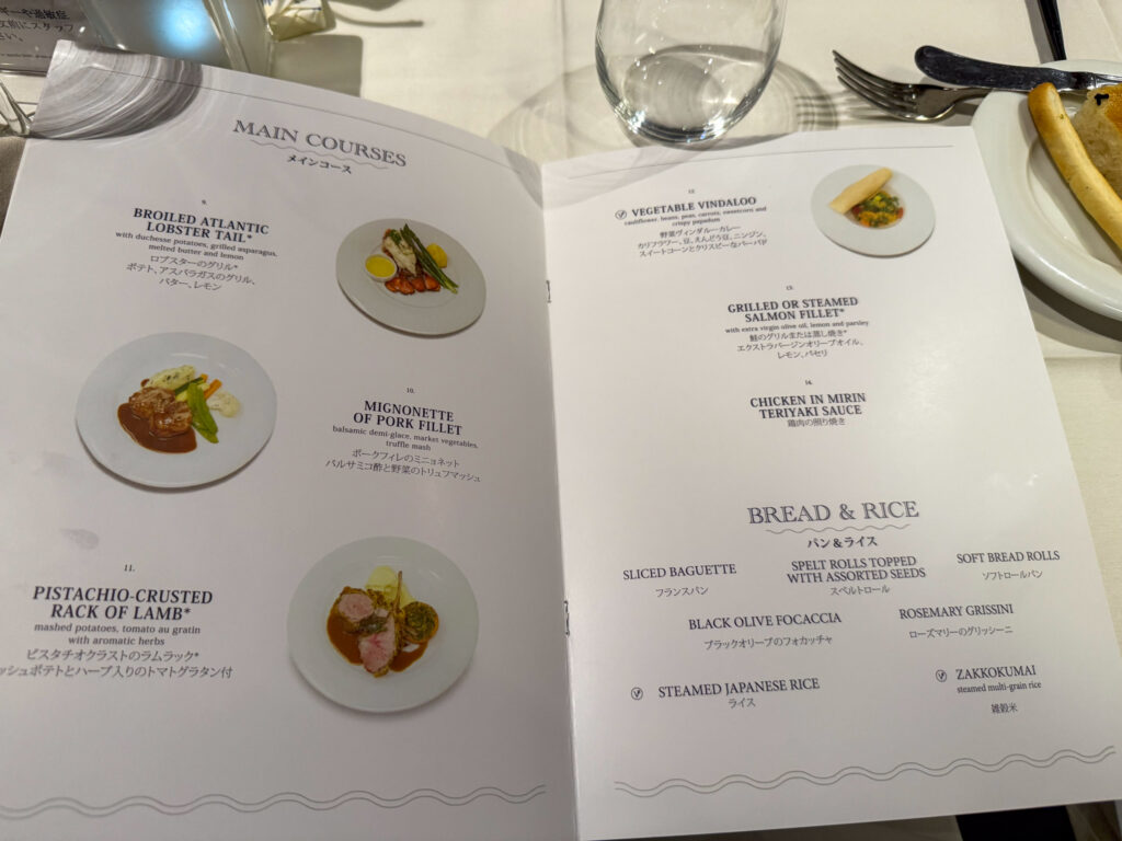 この日はフォーマルナイトだったのでメインダイニングのメニューが豪華でした!